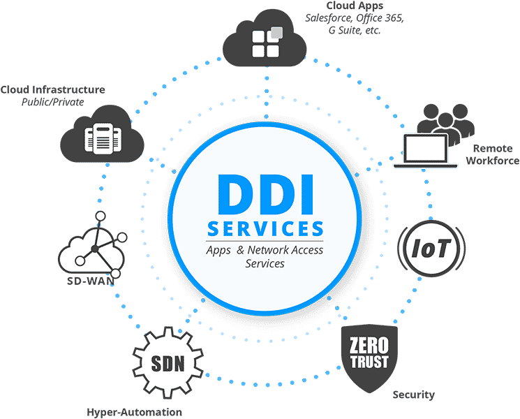 For enabling and accelerating your projects, DNS, DHCP, and IPAM, collectively known as DDI Technology, Network Automation and DNS Security services are foundational.