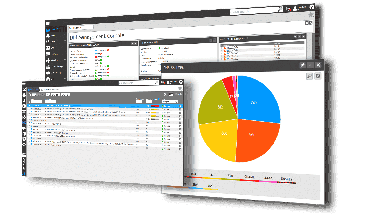 SOLIDserver centralizes all information from the IP plan and DNS and DHCP servers into one singular interface and allows you to manage your network services as a distinct entity – ensuring high availability, security, and network consistency.