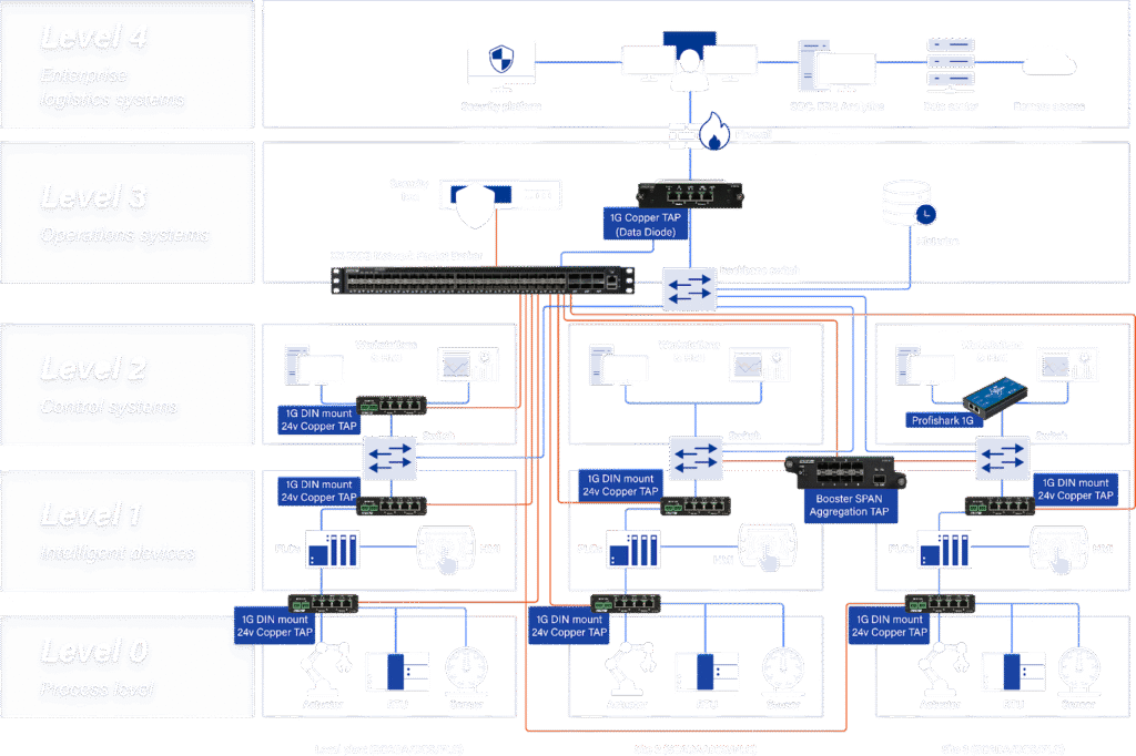 Deploy active TAPs equipped with fail-open relay mechanisms when inline bypass capability is required. This ensures that traffic continues to flow without interruption during device outages or maintenance and aligns with high-availability policies standard in OT environments.